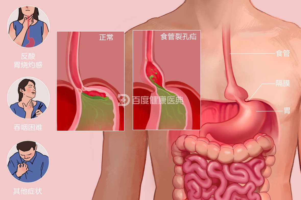 · 反流和烧心: 这是常见的表现。由于胃的位置异常,胃里的胃酸和食物更容易反流到食管里,引起胸口火辣辣的烧灼感,嘴里发酸。