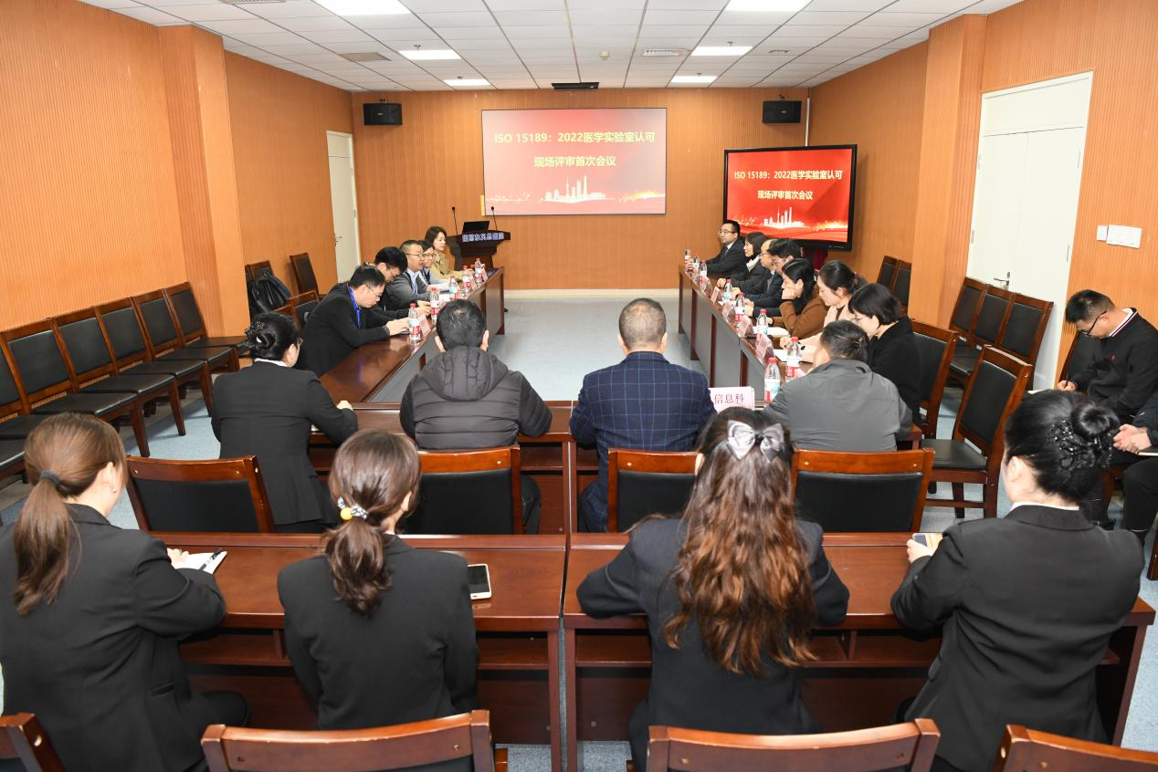 国药东风总医院副院长程立率医务部、护理部、全质办、服务品质办、设备科、信息科、宣传科的同志及医学检验科迎评小组参加了会议。评审组蔡安季组长首先介绍了此次评审的目的、依据、范围、专家组成员与分工和本次评审流程,并强调了评审的公正、客观和保密原则。医学检验科主任张华汇报了科室依据新版ISO15189要求建立的质量管理体系和能力建设的运行情况。程立代表医院对专家组的到来表示欢迎,并介绍了医院的基本情况以及对质量体系认可的重视,医院对此次评审给予大力支持。